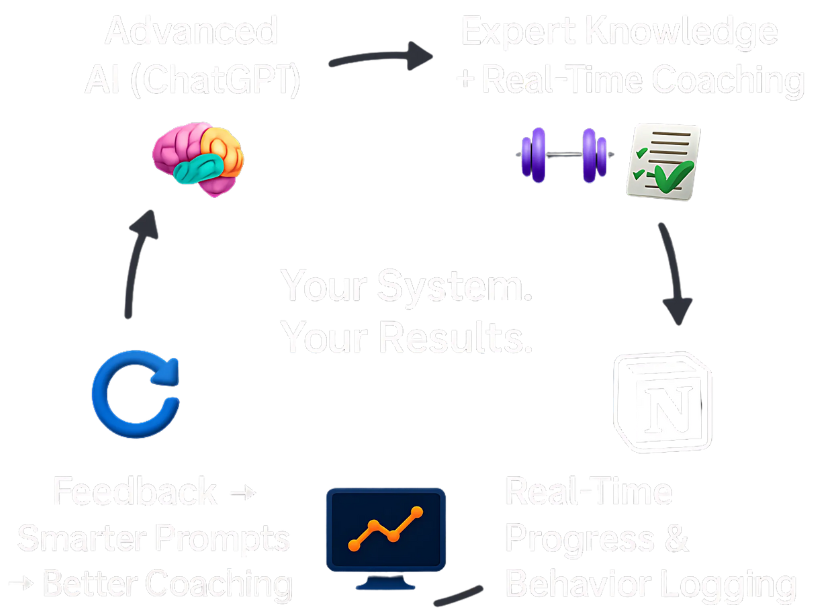 CoachGBT is a fitness operating system — powered by ChatGPT and supported by Notion, and structured around how you actually train, eat, and live.